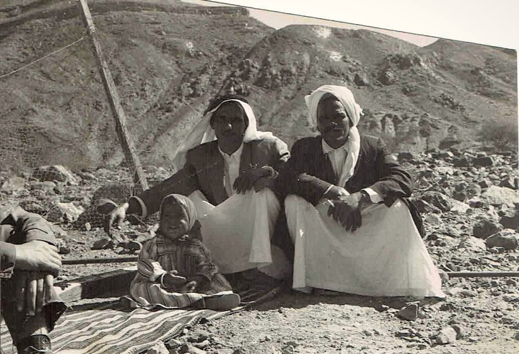 Suddenly, in the middle of the desert by the roadside, we saw a Bedouin sitting under a palm frond he had stuck in the ground, shifting with the shadow as the sun moved. The chance of a vehicle passing by there was slim, but the man had nowhere to rush to—he had no watch, and as the saying goes, “haste is from the devil.” The driver who knew a bit of Arabic asked him if he knew the man we were looking for or the wadi he lived in. He said yes and would show us the way. After wandering in the desert, we arrived at the tent where the hitchhiker lived. With hand gestures, he tried to explain how to continue further. We went on, and towards evening, we found Subhi, whom we were searching for. He invited us into his tent, served us tea, and received the gifts we brought. All of this was so he would show us the way to the “Tuvia Forest.”