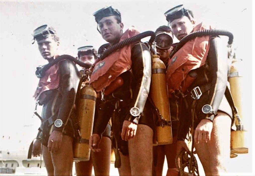 The course progressed slowly. We learned to dive and feel like fish in the water. Some guys were afraid and filled their lungs with air, making it impossible to submerge. For them, they strapped on two weight belts, which sank them like an anchor the moment they touched the water. That scared them even more, and then came cases of ear infections, which helped those guys quit the course.