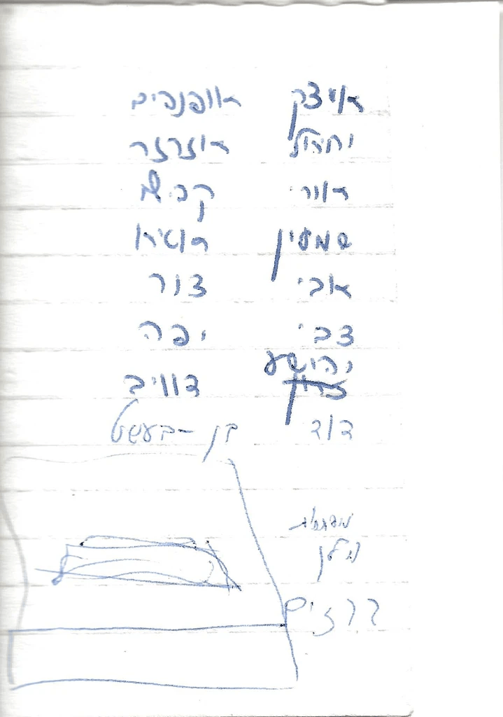 Apparently, during a briefing, Ami Ayalon didn’t have a notebook, so he wrote in mine — details of a secret operation near the Port of Eilat, including execution instructions. I don’t remember whether it was during battle exercises or if there was genuine concern about Egyptian divers planting mines in the port, possibly from Jordan. I’m sure no mines were laid during our watch — not then, not ever.