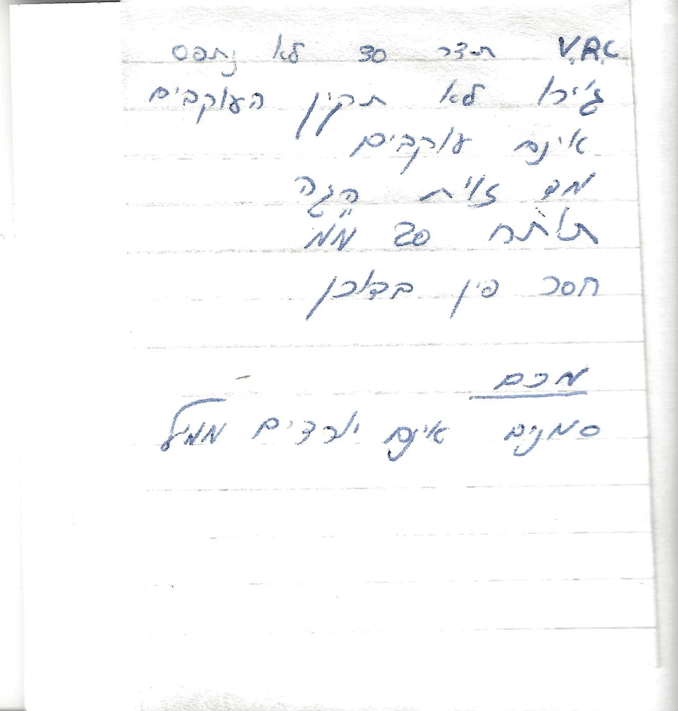 Detailed description of damage I caused to the Dabur when docking on a cradle (primitive dry dock) in Eilat, with only one engine working. I wrote it down to report to “Karish” over the phone and request to be relieved of command — before I sank the entire fleet and left the Phantom (berthing barge) in Sharm empty. He didn’t accept it and said that only a rabbi from Zikhron wouldn’t run into such trouble.